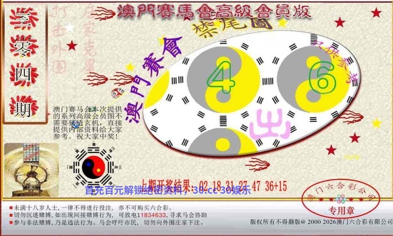 306期:六合三怪/内部平特诀/独家六合玄机/六合对诀/波色输尽光